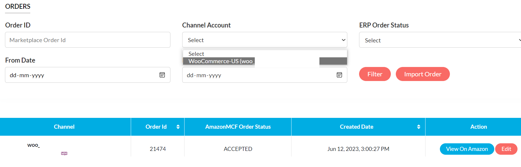 - One drop-down menu: ERP Order Status , Channel Account .